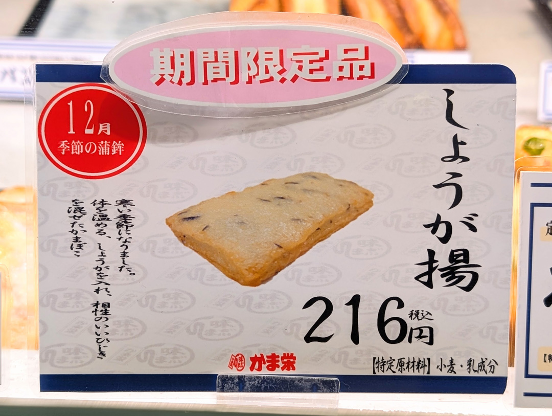 12月のかまぼこ、しょうが揚をどうぞよろしくお願いします^^☆